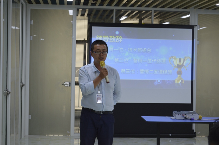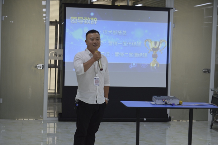大會開始由技術部楊總、營銷一區代經理、營銷二區譚經理為此大會致辭。各位領導表示了對馳通未來的希望,以及對即將晉升主管的幾位同事多年付出的肯定,鼓勵各位在場的同學不要停下前進的步伐,努力更上一層樓。