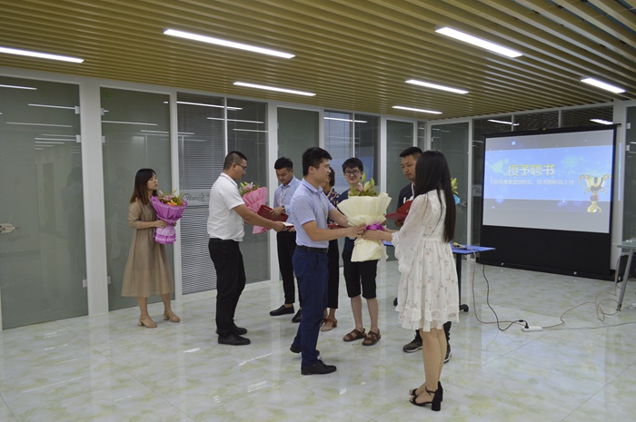 羅大陸同學自2015年入職以來,對銷售一直有一顆熱烈的心,用自身的熱情去感動客戶,為公司的發展壯大做出巨大貢獻。晉升主管2個月以來,努力完成自身業績,并用心教導下屬成員,認真落實崗位職責。大會上羅大陸同學對下屬同事進行鼓勵,對公司領導多年的悉心教導表示由衷感謝。